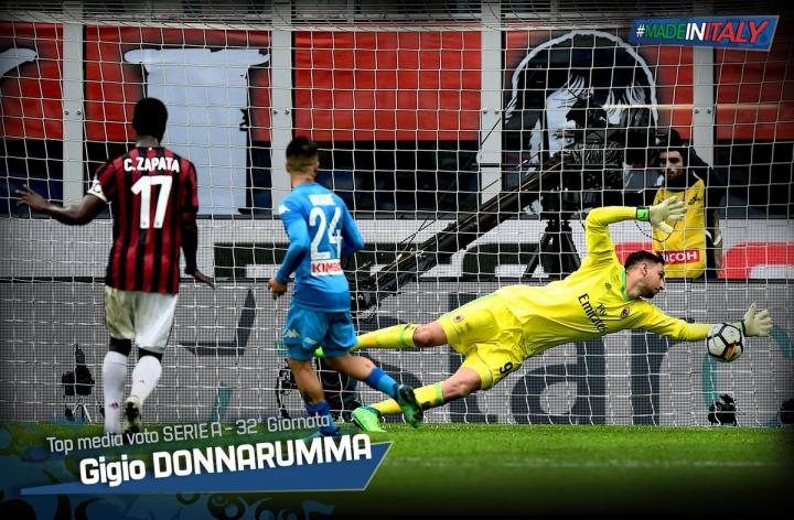 综合意大利三大报评选结果和意大利国家队意见,AC米兰青年门将多纳鲁马成功当选意甲第32轮本土最佳球员。