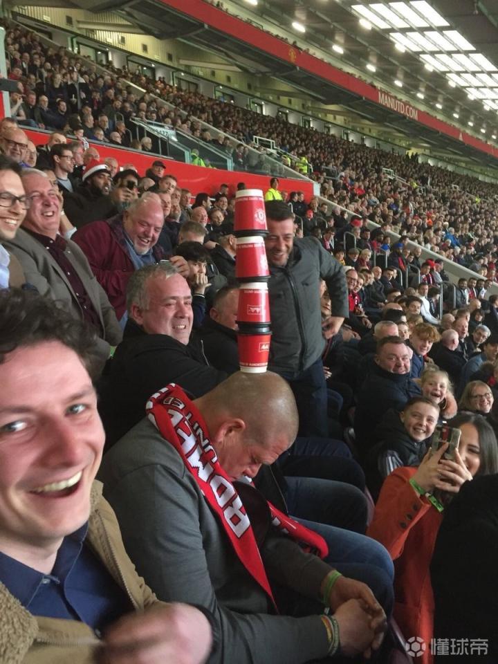 比赛太无聊?球迷在梦剧场睡着大波儿 @懂球帝2018-04-17 02:07本轮联赛曼联主场爆冷负于排名垫底的西布朗,也让同城死敌曼城提前五轮夺冠。在这场稍显无趣的比赛中,老特拉福德球场的观众席却出现了相当精彩的一幕。可能是因为比赛太过沉闷,这位曼联球迷竟然在观众席上睡着了。更让人目瞪口呆的是,周围的球迷在他脑袋上玩起了叠罗汉,这位老哥顶着四个杯子依然稳稳保持着原来的姿势,美梦一点也没有被打扰。周围的球迷纷纷转过头看向他,并拿出手机拍照留念。展开更多