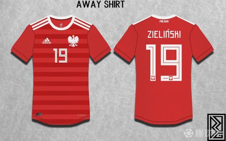 主场设计接近于1986年波兰的球衣,白色球衣红色的字,肩膀处的条纹也是红色。客场球衣是同样的设计,颜色换成红色。