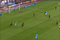 相比其他两名中场,纳英戈兰的优势是脚下的摆脱和控带非常娴熟,比如上面这球就是他在背身接球的情况下,非常灵巧的通过半转身摆脱了逼抢的拉齐奥球员,直塞弱侧的佩雷斯,险些帮助后者打破僵局。