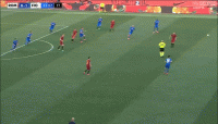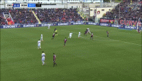 以上两种是佩罗蒂在边路比较习惯的处理球手段。一是带球内切与中路队友联系,通过撞墙或45度直接起球的方式。当然如果科拉罗夫走外线的话,他也会将球做给套上的科拉罗夫;二是在边路连续晃动后走外线起球。佩罗蒂的脚下速率快,协调性好,非常善于通过节奏和重心的变化晃开空间,但因身体对抗和爆发力都不算非常出众,有时并不能完全摆脱对手的盯防。不过佩罗蒂的传球和传中脚法都非常出色,而且双足都能起传中球。