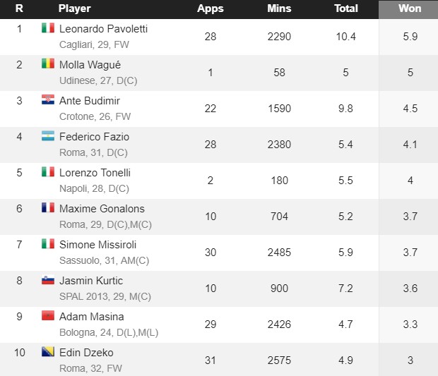 法齐奥身高195cm,对第一点有着绝对的控制能力。他的场均空中对抗成功数高达4.1次,排名全意甲第四,中卫里则排第二: