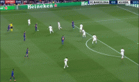 在对手的逼抢下,小胡安的身体本来面向左侧,但做了一个假传真扣的动作,将球转移到了右路的队友,其拿球和出球能力展现的淋漓尽致。