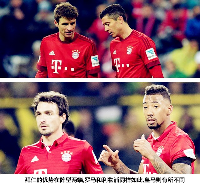 从很多方面上来说,两支球队都有着共通点,比如中场和卫线实力雄厚、能够在推进和渗透之间快速切换、擅长利用长短球结合的方式打击对手、边路能力下滑明显但又在勉力支撑。拜仁的优势在于攻防两端的稳定性更强,近两季无数的大逆转名局无不说明中场为王的时代已经进入了拐点,中锋和中卫对比赛的影响力正在回归,豪门中卫防不住豪门前锋的意味着能够在两个禁区内高效解决问题的球队,将在战术针对性更强、更加强调平衡的欧冠淘汰赛阶段占据先机。罗马能够在不被看好的情况下连续压过马德里竞技、切尔西和巴塞罗那三支劲旅便已经证实了这一点,拜仁在中锋和中卫方面的配置显然要优于意甲球队,这是他们能够与皇马相抗衡的资本。