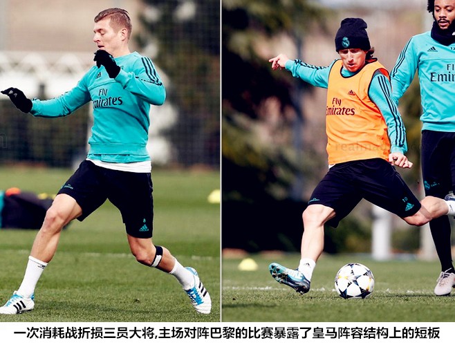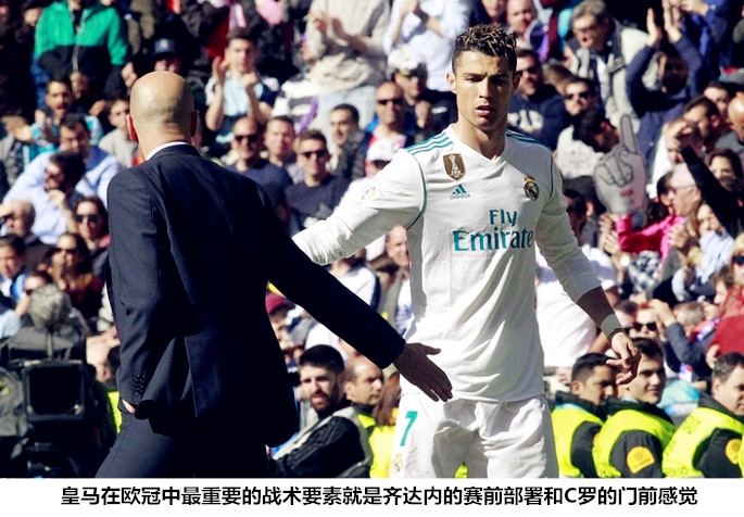 不能在自己擅长的进攻中压制对手,那就只能在无球防守阶段承受对手的折磨,皇马中场和边卫的困境并非是因为他们不具利用控球压制对手的实力,而是温布利惨案、首回合国家德比大败和两回合双杀巴黎等关键战役形成的反差过于强烈,齐达内已经不像赛季初那般对控球战术信心十足。同时,全队狂奔123.6公里击败巴黎但却付出了莫德里奇、克罗斯和马塞洛三员大将受伤的惨烈胜仗,又让齐达内对“用跑动换空间”的高能战法心存忌惮。在控球和全场压迫打法均无法久持的情况下,齐达内不得不选择“C计划”,即抢开局后的稳守反击,说到底这都是缺少前场爆破手和中锋效率下滑造成的连锁影响。