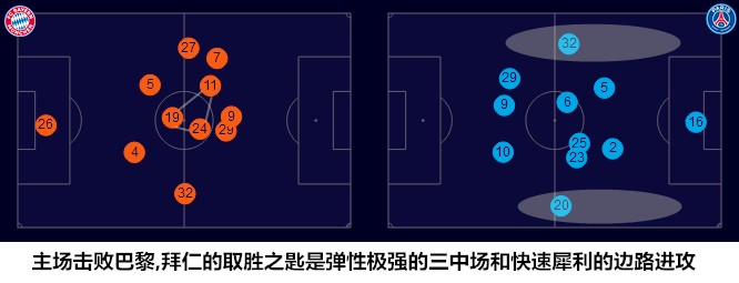 (主场击败巴黎,拜仁的前两个进球都是左中场J罗在完成中路防守后快速"弹出"后的拉边传中。)