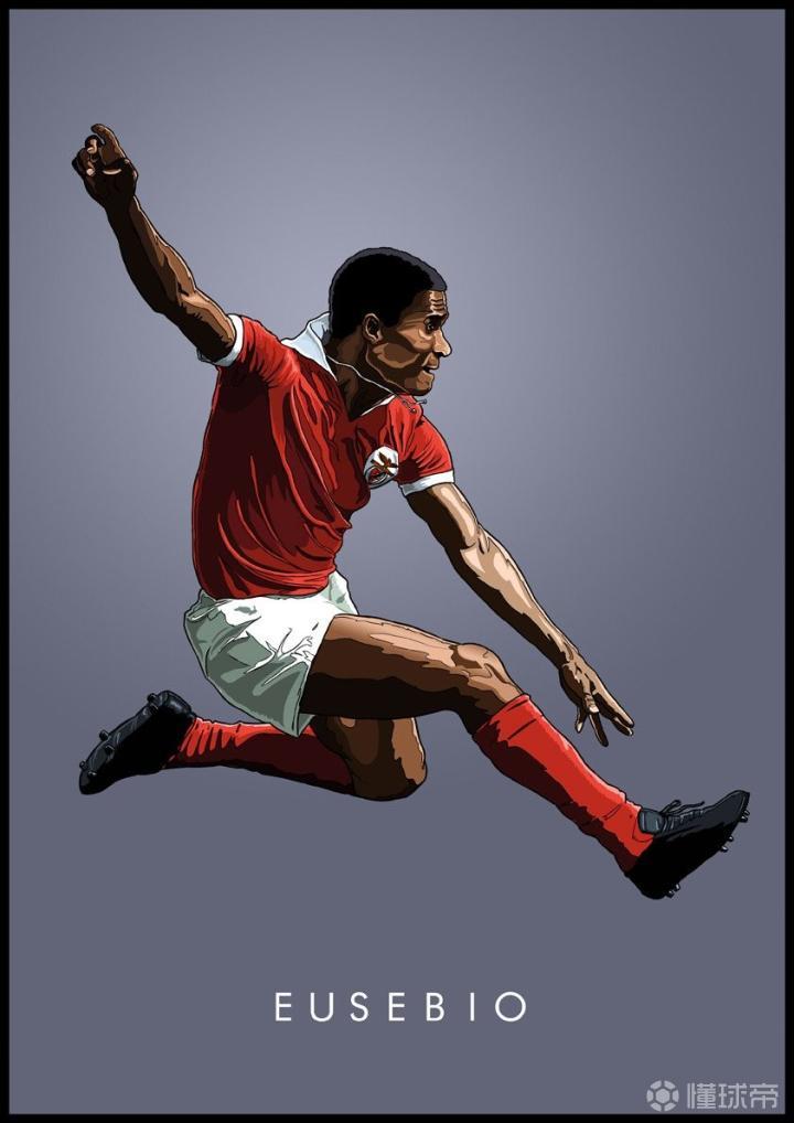 在1964年的欧洲杯赛上,他屡屡以火箭般的射门令人生畏。1962和1966年,尤西比奥两度入围欧洲最佳球员的评比,获银球奖。1968年和1973年,尤西比奥两次成为欧洲最佳射手,获得欧洲金靴。他是非洲大陆的第一位足球明星(原籍是莫桑比克,后加入葡萄牙国籍)。