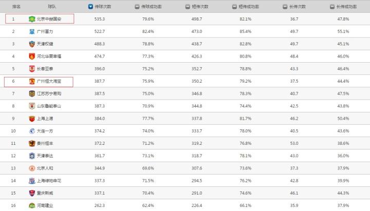 众所周知,国安和恒大都是地面传控为主的打法,中超前六轮战罢,两支球队的场均控球率都名列前茅,所以本场比赛双方肯定都会力拼中场。中场的争夺体现在传控组织和拦截抢断两个层面,具体来看,国安中场拥有奥古斯托、池忠国、朴成和比埃拉,脚下技术能力一直都是球队的优势。技术统计显示,前六轮中超联赛国安场均可以完成535.3次传球,排名中超第一位,而且79.6%的传球成功率,也仅次于广州富力,排名第二。