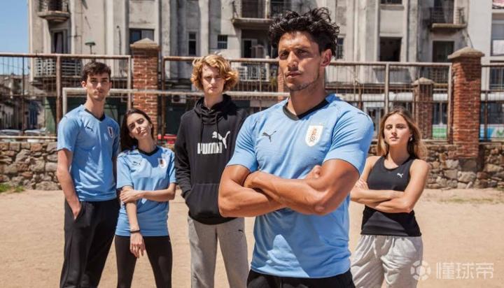 乌拉圭国家队2018世界杯主场球衣由Puma设计发布,球衣主色调为经典的天蓝色,设计师巧妙地将国家符号「五月的太阳」融入了球衣的整体之中,以体现“号召球迷和球员团结一心,为即将到来的世界杯倾尽全力”这一理念。