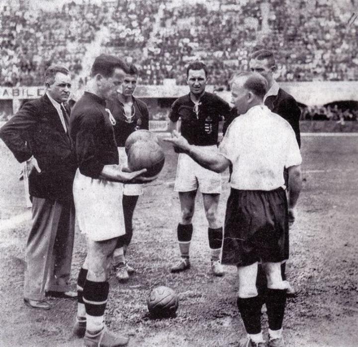 许多年过去了,现在我们有充分理由说,第2届世界杯足球赛是世界足球成就的大检阅。这次比赛曾最后一次采用不列颠传统布阵法:2名后卫、3名中卫、5名前锋。与此同时,这种布局也开始出现新的变化。