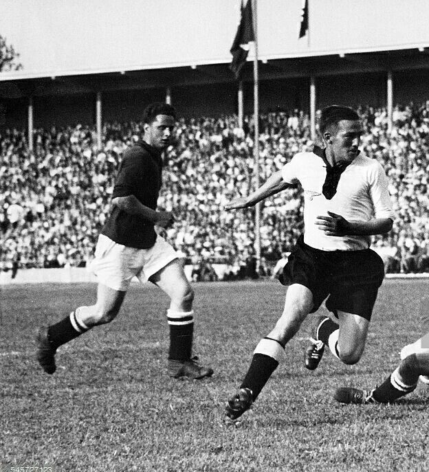 到了1938年的第3届世界杯足球赛中,球迷们还会与这位在意大利威震世界足坛的普拉尼卡见面。关于康巴尔,我们已经谈过。而右后卫拉基斯拉夫-日尼舍克成了传奇式人物,新闻界誉之为“捷克雄狮”。捷克队的其他队员,也都值得赞誉。但基于某些原因我们还是详细谈谈内耶德利。1934年世界杯期间,内耶德利在罗马一下子就声名大振,成了世界杯足球赛中最出色的“轰炸机”。捷克队之所以能够战胜罗马尼亚队、瑞士队、法国队,内耶德利起了举足轻重的作用。奥尔德里希-内耶德利善于把握场上局势,巧妙的射门常常使对方守门员束手无策,望球兴叹。他深谙球谛,善于利用对方门前的各种险情。