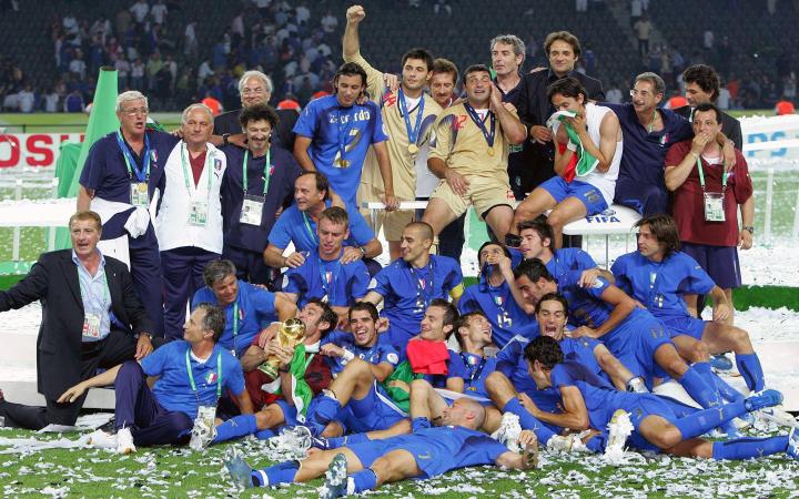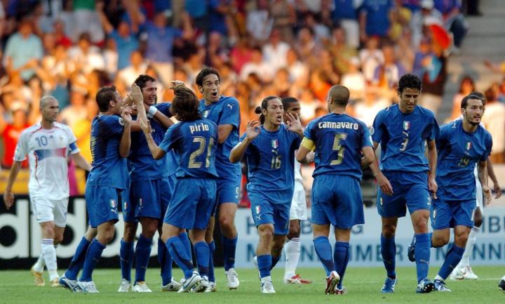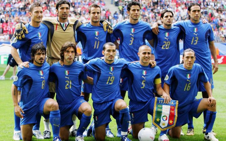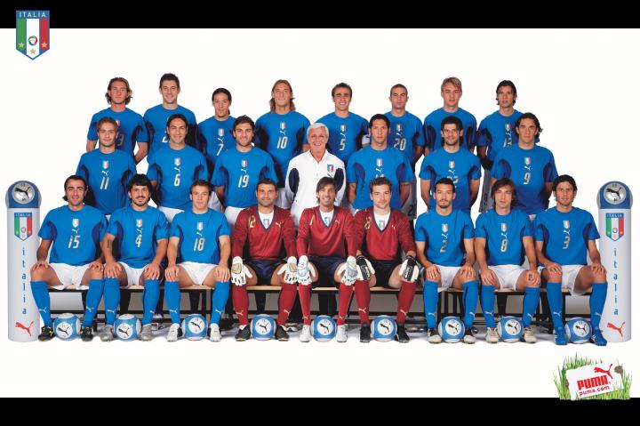 ↑2006世界杯夺冠之后,队徽上参加了一颗星,象征他们的4个世界杯冠军,意大利足协的标志也加大了;意大利队在2006年世界杯后开始穿着这款四星球衣参加比赛。FIGC是意大利足球协会的缩写。