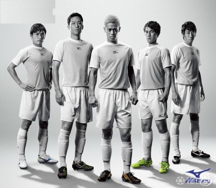 日本另外两位mizuno的代言人,是冈崎慎司和吉田麻也,都在英超效力,冈崎慎司曾经是日产wave cup的代言人,但来到英超以后开始代言basara系列。而吉田麻也和本田圭佑一样,基本就是无回旋系列,如今是毫无疑问的亚洲第一中后卫。从下面的图中可以很明显看出,日本有五大球星代言mizuno,本田圭佑,冈崎慎司和吉田麻也是国际代言,而中村宪刚和青山敏弘则是日系morelia的代言人。