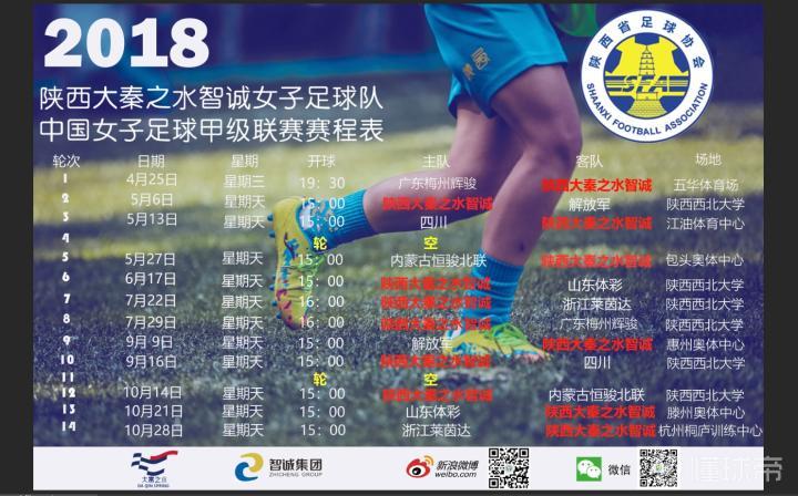陕西大秦之水智诚女子足球队2018女甲赛程
