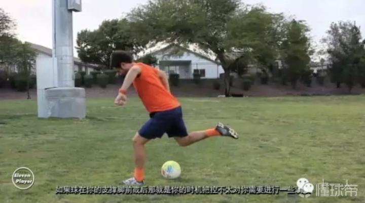 而不是这样在摆腿之后球跑到了自己身体的后侧。