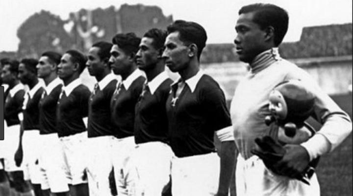 荷属东印度,就是现在的印度尼西亚,入围了那一年的世界杯正赛,阵中有三个华人,Tan See Han(替补,未出场),Tan Mo Heng(首发门将)和Tan Hong Djien(首发前锋)。