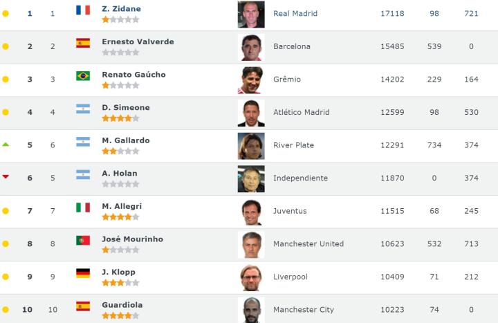 足球网站“clubworldranking”更新了最近一期的教练排名。与上一期相比,前十基本无变化,齐达内高居榜首,排在第5位的霍兰下降到第6。中超方面,卡纳瓦罗位居第110,中超榜首。
