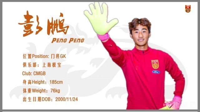 彭鹏,今年17岁,现任中国国家青年队门将。