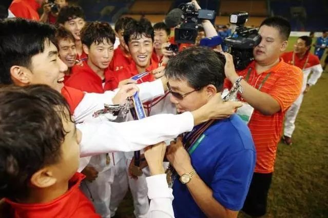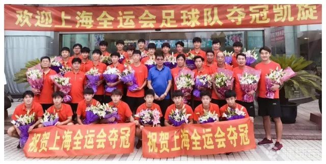 队员与徐根宝一起庆祝全运会冠军