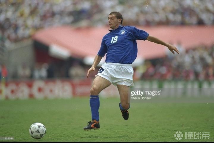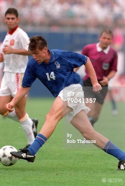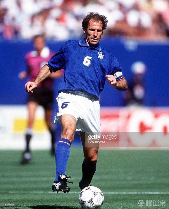 另一名意大利防守悍将塔索蒂,使用的也是valsport的Goledor足球鞋,这款黑白配色的足球鞋,他使用了很久,1994年世界杯上,他在和西班牙的比赛中一肘子把恩里克打的血流满面。