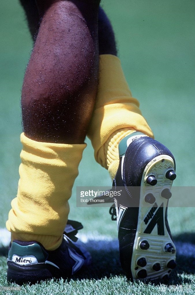 除此之外,喀麦隆队的米拉大叔,似乎是那届世界杯唯一一个使用意大利pantofola足球鞋的球员,他的这款黑色足球鞋,也是非常罕见的。米拉大叔年事已高,所以选了一双鞋钉特别多的足球鞋,类似如今的ag鞋底。