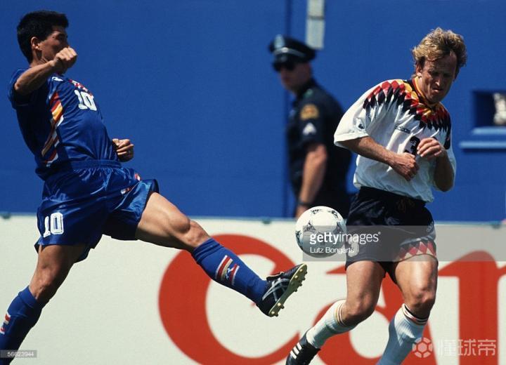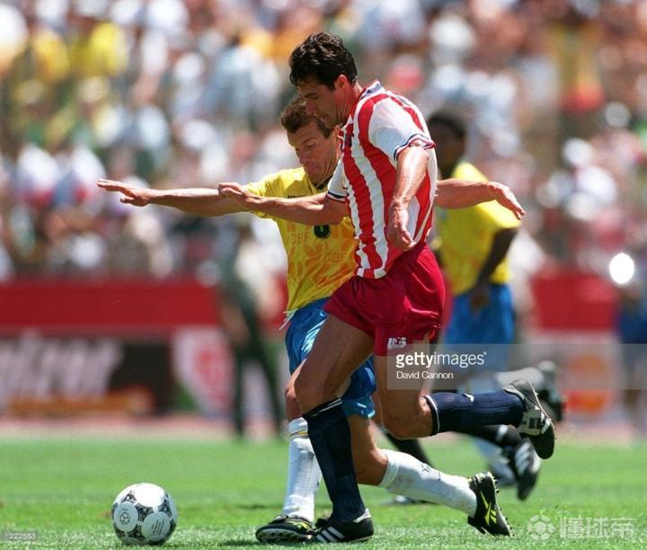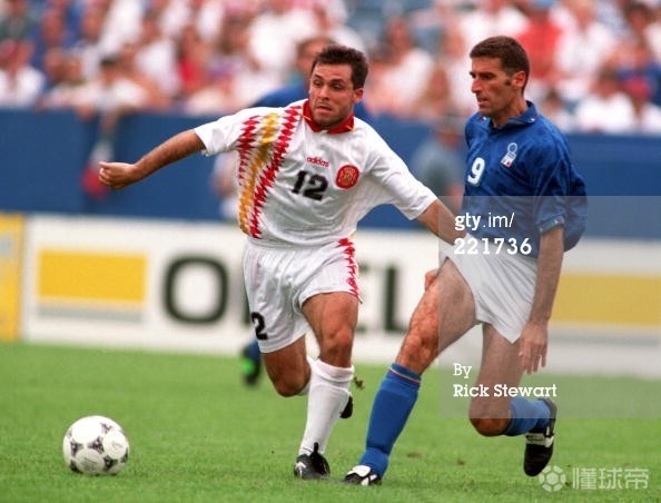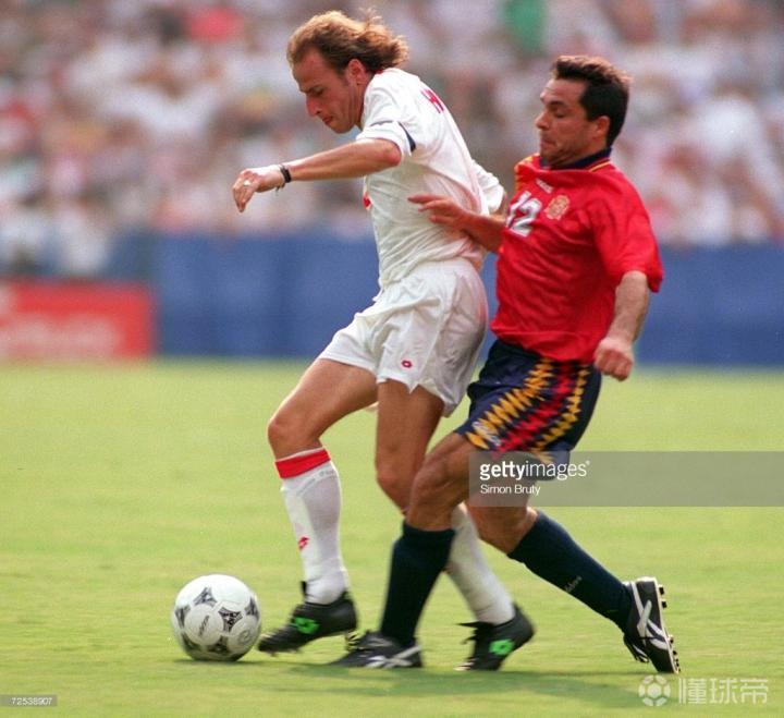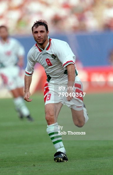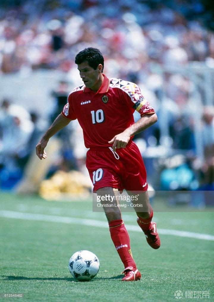 说了一圈,又回到了意大利品牌,下面再来说一个小众品牌,那就是kronos,上届世界杯的金靴斯基拉奇使用的就是这个品牌的足球鞋,那么1994年,这个品牌的代言人是谁,答案是保加利亚头号巨星斯托伊奇科夫,在意甲效力的火爆男子,也是个喜欢非主流足球鞋的球员。而且斯托依奇科夫的鞋子是专属款。其国家队队友巴拉克夫,似乎也很给名字,平时一直穿adidas copa的他,居然也帮斯托依奇科夫一起代言。