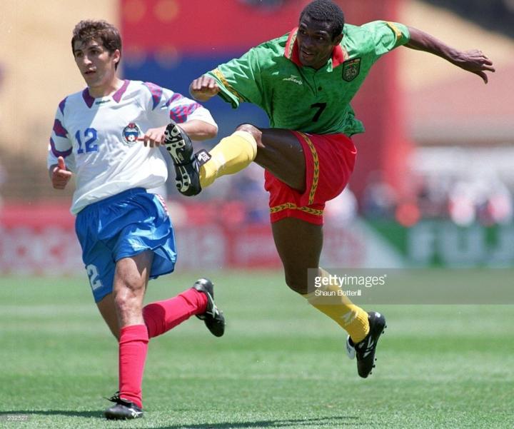 说到喀麦隆,作为非洲球队,总是不被赞助商看好,所以在那届世界杯英国品牌mitre赞助了喀麦隆队,所以有很多球员都是用mitre的足球鞋,其中最多的是一款叫premier的足球鞋。另一款意大利产的mitre足球鞋也有不少喀麦隆球员使用。