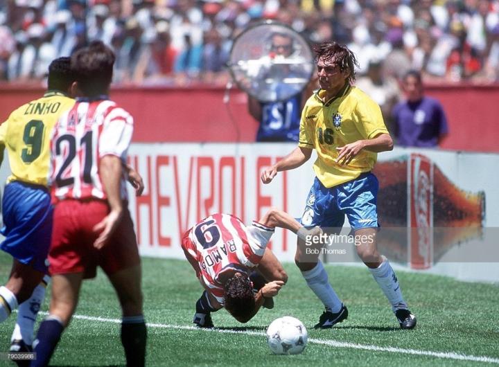 本来我以为还有另一双鞋也是个奇葩,那就是1994年巴西队的左后卫布兰科的鞋子,在和荷兰队比赛中,他使用了一双很奇怪的足球鞋,还打进了那个很精彩的贴地任意球。看来这又是一个新的品牌,结果后来看图,才发现,原来他使用的是reebok的足球鞋。只不过把中间的那一条黑色给图白了。不知道是什么心态。