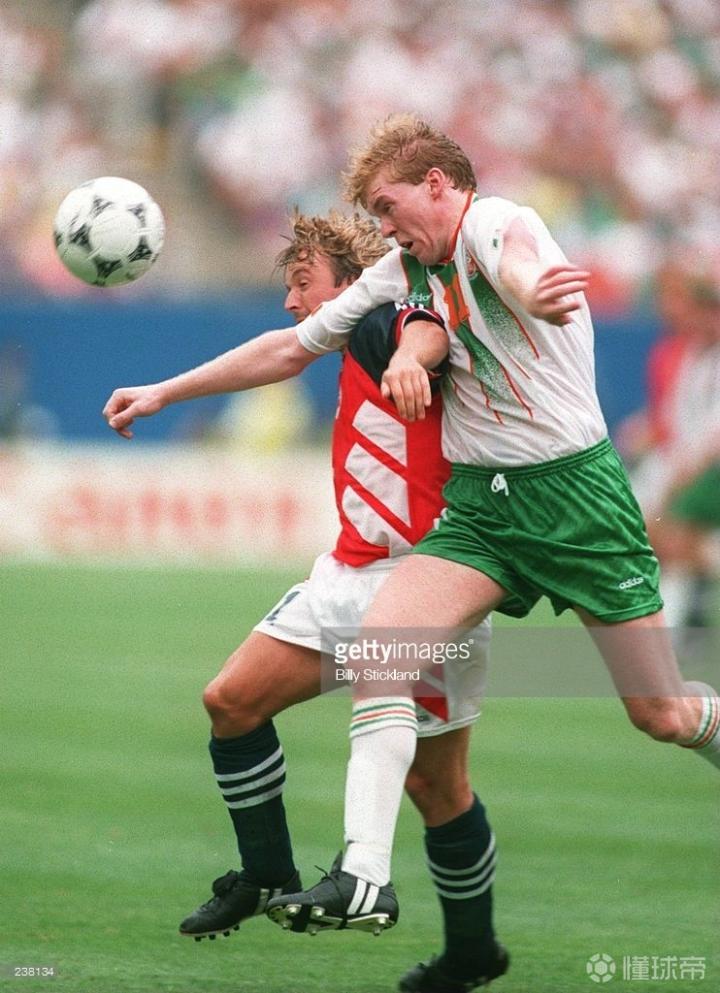 所以爱尔兰队似乎承担起了为英国足球产品代言的重任,1994年世界杯上,英国小品牌arrow就由两位爱尔兰球员代言,著名的边后卫安迪汤森德和卡斯卡里诺