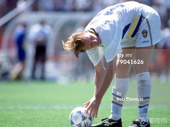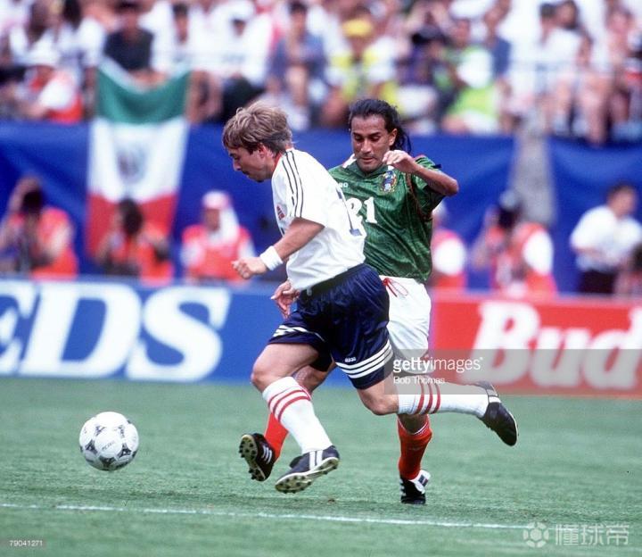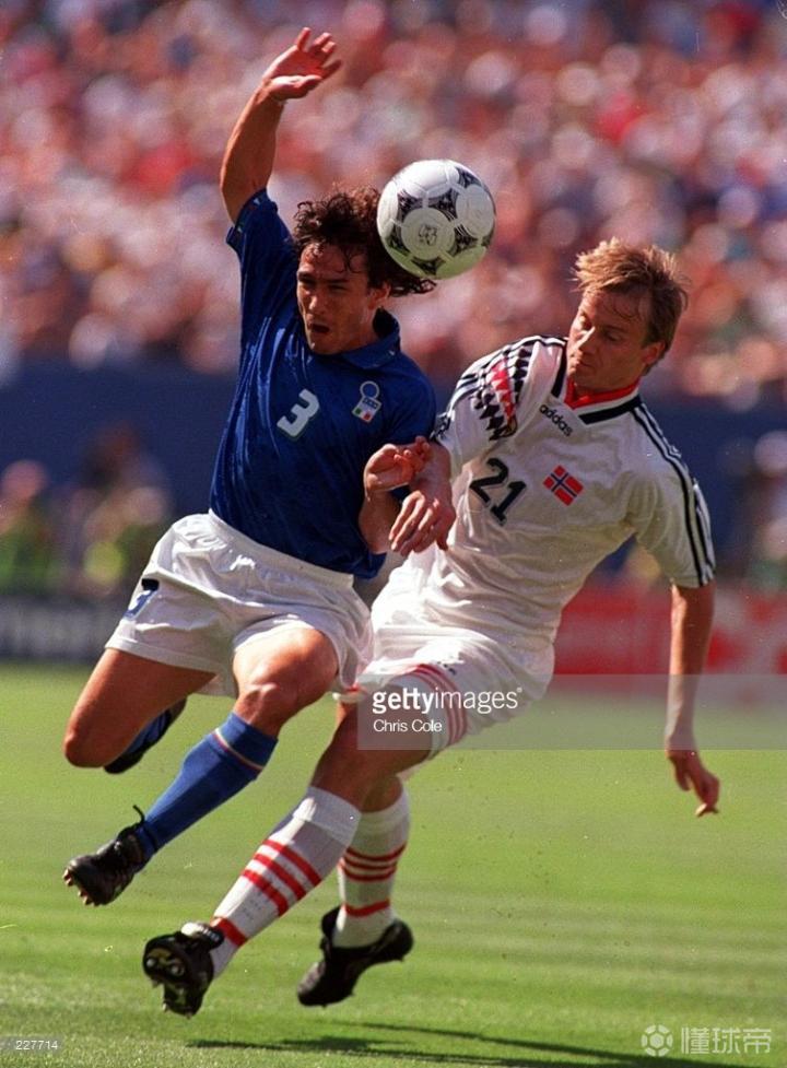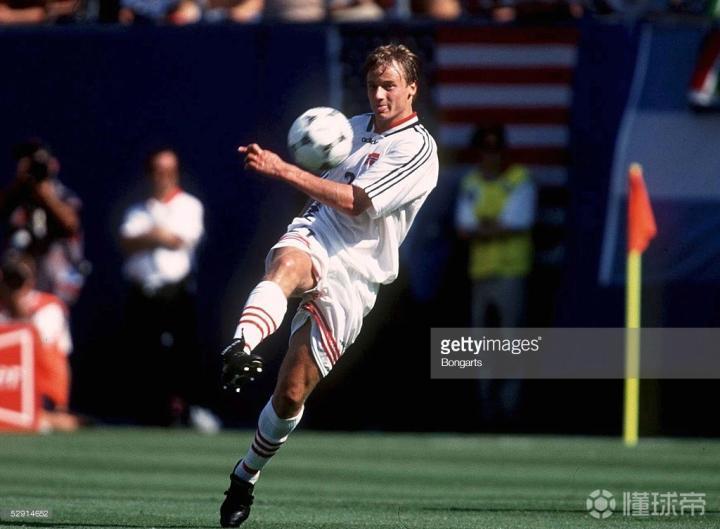 英格兰队的出局,导致英国足球鞋品牌的落寞,茵宝虽然赞助了冠军巴西队,但是茵宝品牌的足球鞋在1994年世界杯上几乎绝迹。我找了好久,才找到一位,挪威队的21号拉什菲尔德,他使用的就是1992款speciali,虽然图片不是很清晰,但可以肯定是这双鞋。