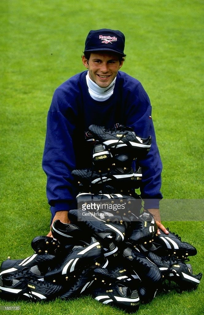 1994年世界杯,是reebok世界杯的处子秀,这个历史悠久的品牌,进入足球领域是在1993年,当时的锐步绝对是土豪品牌,财大气粗,先是签约了吉格斯作为代言人,然后紧接着在1994年世界杯上,赞助了很多球员。吉格斯手中这款鞋,就是reebok 1993年发布的第一款足球鞋。使用的球员非常多。其中包括哥伦比亚金毛狮王和墨西哥队长阿斯配。