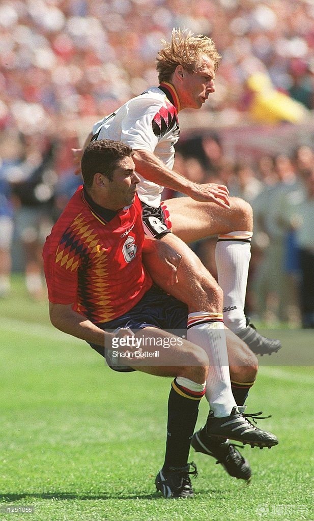 刚刚说到各种肘击,而我们肘击受害者路易斯恩里克,似乎比较悲催,他在那届世界杯穿了一双黑红色kelme trueno,不知道是不是因为这个原因才血染赛场。要知道他穿着黑白色的鞋子还在和瑞士比赛中进了个球。除此之外,西班牙的萨利纳斯和卡米内罗,也都是用的卡尔美足球鞋。1994年,trueno足球鞋也成为kelme最主打的款式,西班牙生产的袋鼠皮足球鞋,口碑不错。