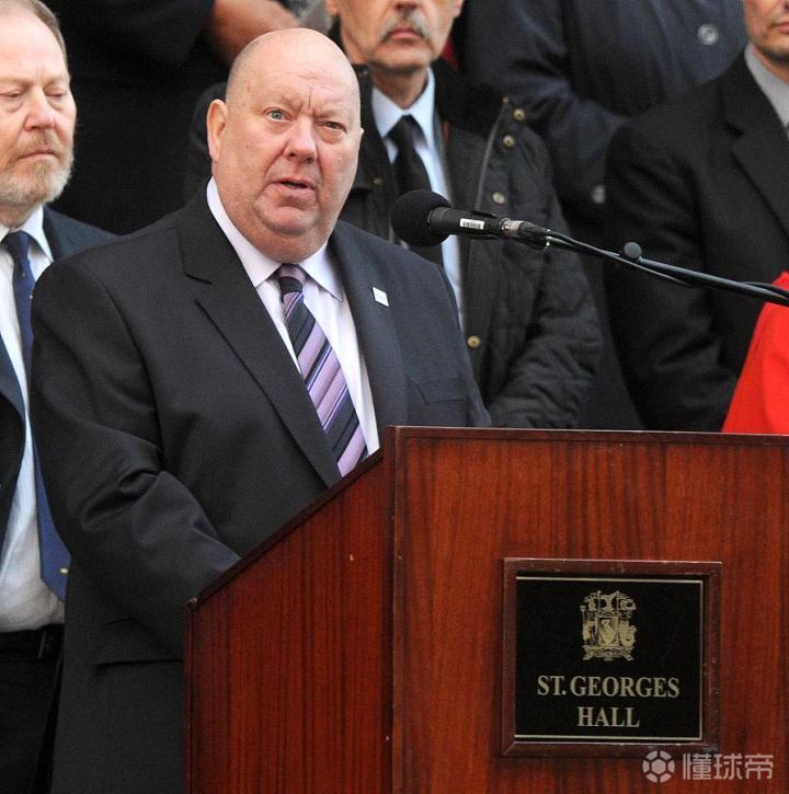 资料图:2012年,利物浦市长乔-安德森出席希尔斯堡惨案的悼念仪式。