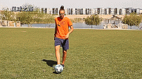 如果用脚外侧接球时过于向外,说明接球的位置不对,用脚外侧小脚趾附近的位置触球。