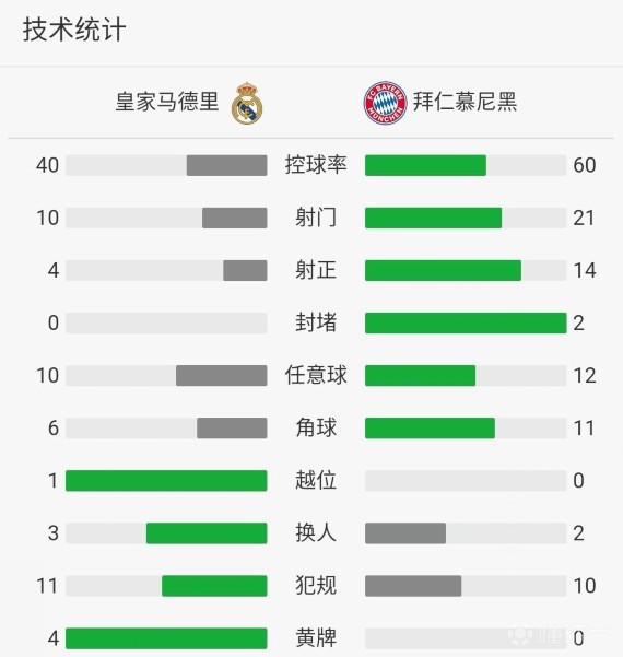 全场比赛结束,皇家马德里2-2战平拜仁慕尼黑,两回合总比分4-3晋级欧冠决赛。