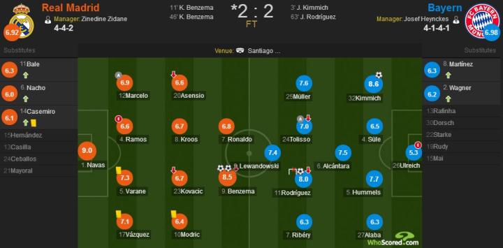 第63分钟,J罗进球,皇马2-2拜仁。
