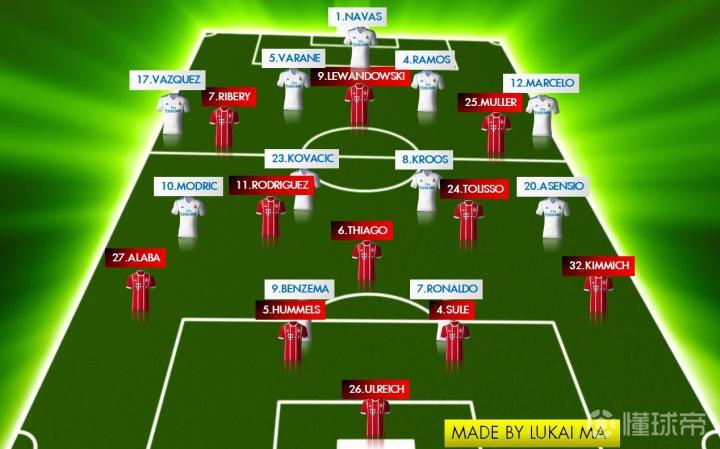 (图)皇马vs拜仁慕尼黑:首发阵容