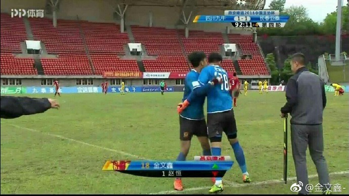 2018年4月24日,自贡南湖体育中心,当足协杯第四轮四川九牛vs长春亚泰进行到常规比赛时间的最后阶段,四川九牛门将金文鑫将首发的赵恒替换下场,为点球决战做准备。而在经历了充满戏剧化的点球大战后,四川九牛淘汰中超的长春亚泰,成为晋级今年足协杯十六强的三支中乙球队之一。