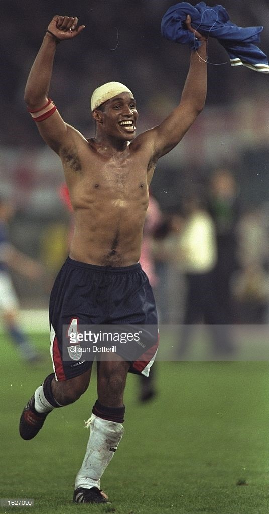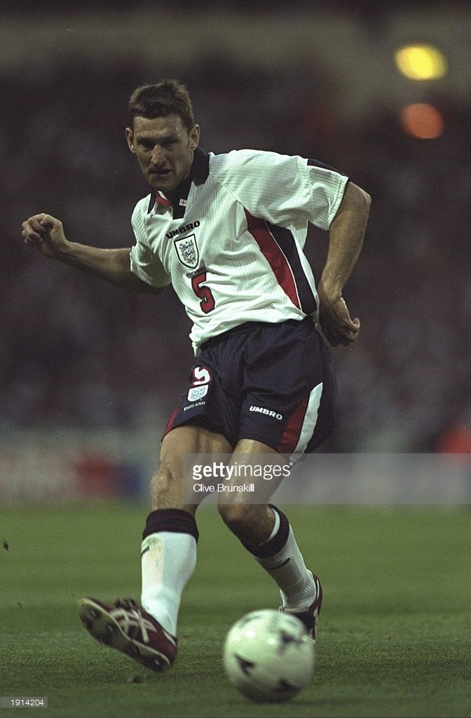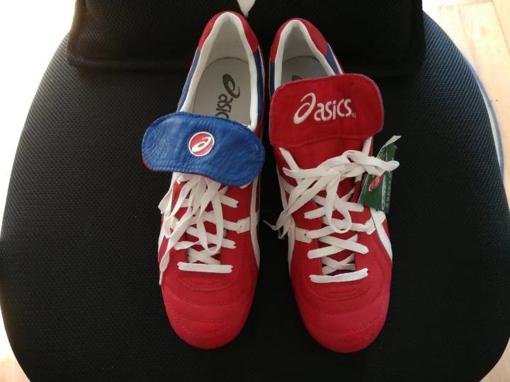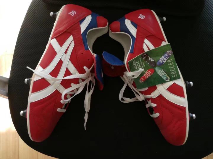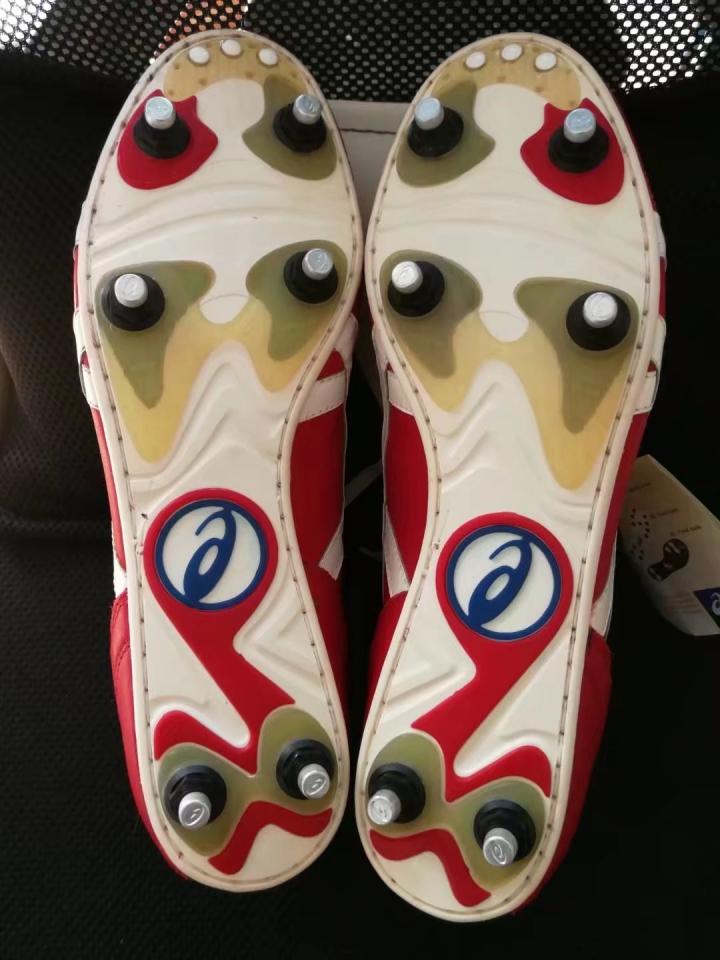 当年的英格兰队,确实是奇葩球鞋的集聚地,阿森纳铁卫亚当斯,在1997年四国赛上,就穿了一双红色的asics 足球鞋,这款鞋的名字的叫Emperor nc 1,外观确实霸气侧漏。
