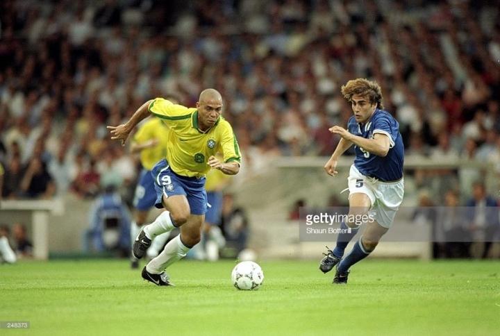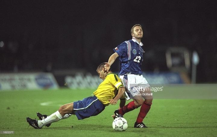 我人生中看过的最特别的比赛,我想应该1997年法国四国赛,这是为了法兰西大球场的落场而举办的比赛,虽然只有4支球队参加,但基本集合了当时大部分的球星,法国、意大利、巴西、英格兰,都是当时非常有实力的强队。我看了所有的6场比赛,并且开始认真研究球员的足球鞋。1997年,我也已经成为当时球队的重炮手,曾经在一次嘉定工业学校球场举行的8人制比赛中,一个球门球直接破门,当然第一落点是在对方禁区内,门将摸到了球再弹进的网,但那个球场外围是300米的跑道。虽然球门球开的很远,但是当看见卡洛斯对阵法国队的无解世界波,不知天高地厚的我当时觉得,球员穿的足球鞋肯定比我们的回力鞋厉害很多,否则我也应该可以和卡洛斯踢出一样的任意球。现在才知道,并不是这么简单。