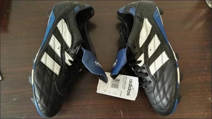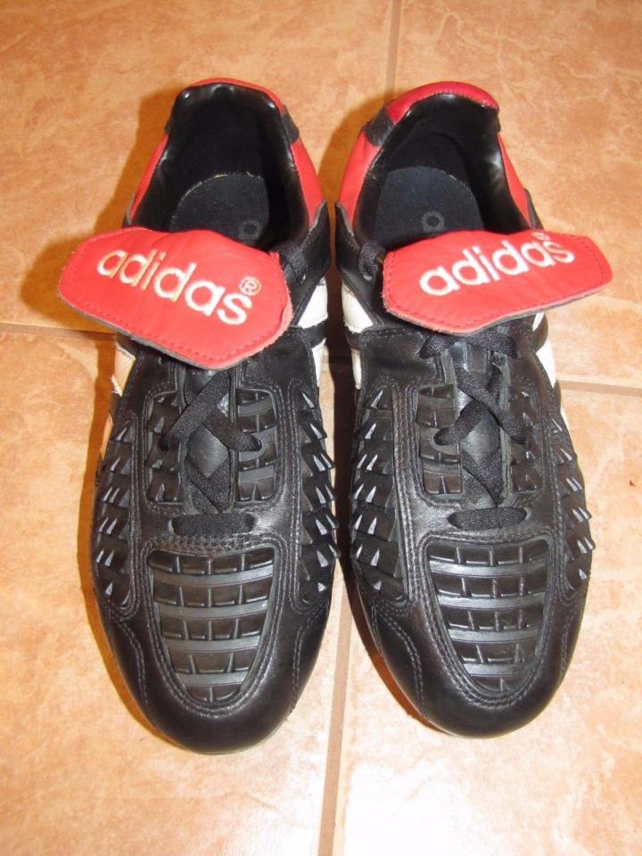 除了猎鹰3代,adidas还有另一款eqt系列的足球鞋,velez cup,也是使用球员比较多,因为鞋舌是蓝色,和意大利的球衣比较搭调,所以皮耶罗,在四国赛上穿的就是这款鞋。还有法国队的莫里斯和易卜拉辛巴,也都是使用的这款鞋。我们在1998年世界杯上应该也能看见这双鞋,但是98年鞋子多,我考虑到篇幅问题,所以在这里先介绍一下。