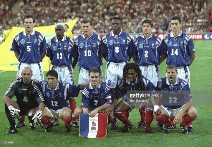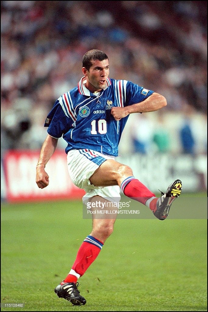 下面就来先看一下我当年的研究结果,因为随后就是1998年世界杯足球鞋的大盛宴,很多品牌都会为了曝光率,在世界杯前签约很多球员,所以我们今天先来看看那些1998年世界杯上看不见的出现在1997年四国赛上的足球鞋。我们先从东道主说起,在1996年欧洲杯上名声鹊起的法国队,在足球鞋方面比较悲催,不知道为啥,可能是因为世界杯东道主的缘故,居然和adidas签了卖身契,和德国队,美国队,中国队一样,足球鞋居然是清一色adidas,其实这个有两方面原因,因为法国早年也是adidas的足球鞋产地之一,world cup和copa都有法国产的版本。所以法国队的鞋子并没有啥看头,大部分不是adidas赞助的球员copa和world cup是他们的首选,而1997年猎鹰是predator touch 3代,在四国赛上,使用猎鹰3的球员主要集中在法国和英格兰,nike是不太会让猎鹰足球鞋进入国家队的。齐达内,皮雷斯,卡伦布、加斯科因、小贝,因斯,勒索克斯,这些球员使用都是猎鹰3足球鞋。1998年世界杯上,这款鞋就会变得稀有很多。