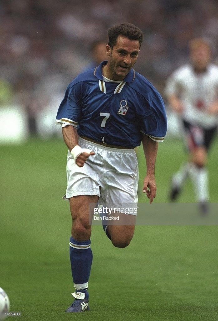 在那年的四国赛上,还有一位球员使用一双蓝色的asics足球鞋,他就是意大利中场迪利维奥,不过这款鞋的型号不明,属于小众中的小众。