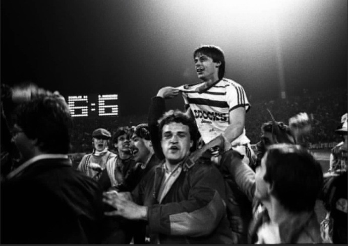 34年前的今天,沙尔克在德国杯半决赛与拜仁狭路相逢,现场所有人都被那场激烈的对决所震撼。在那场堪称德国杯历史最疯狂的120分钟比赛里,双方打成6比6平,托恩连进三球,包括第120分钟的“压哨球”!