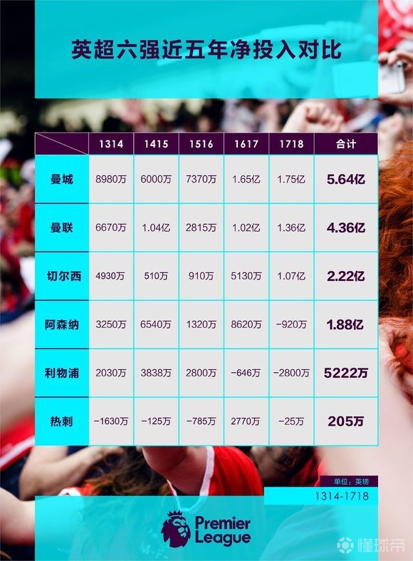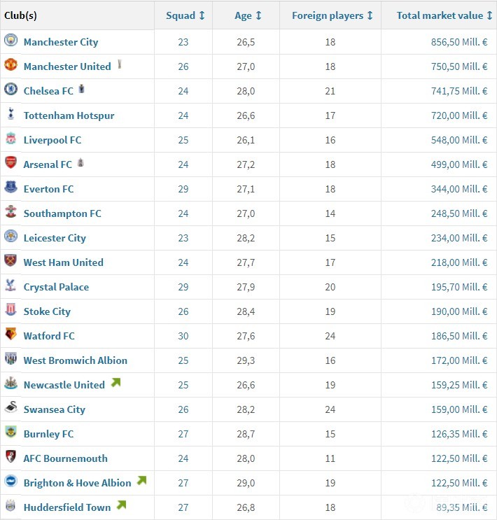再来看看如今德国转会市场网站对英超20强的身价评估,阿森纳排在这份榜单的第6位,而最近5年转会投入为负的热刺总身价雄踞前4,这并不意外,因为波切蒂诺一手打造的哈里-凯恩的身价就已经达到了令人惊讶的1.2亿元。当然最终球队的表现并不能和球队的身价绝对划等号,比如榜单上倒数的伯恩利、伯恩茅斯和布莱顿,他们如今在英超的表现显然超过了他们的全队身价。阿森纳即便不是全英超最豪华的球队,但如今的表现和他们的身价还是很不匹配的。