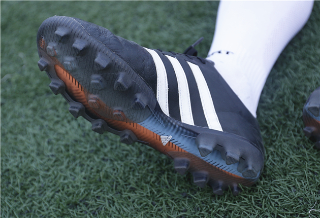 三条纹是阿迪达斯标志性的设计,以往小编穿过的阿迪达斯球鞋都会感觉鞋身侧面的三条纹材质偏硬,但是新11pro就完全不会。上脚后,鞋面贴合脚面,但是又不会感觉被侧面的三条纹夹的过紧,这倒是小编非常意外的。而且实战中的传球触感也比以往更加真实,传球力道掌控更自如。如果你是控球大师,那么它就是你的“伯乐”。