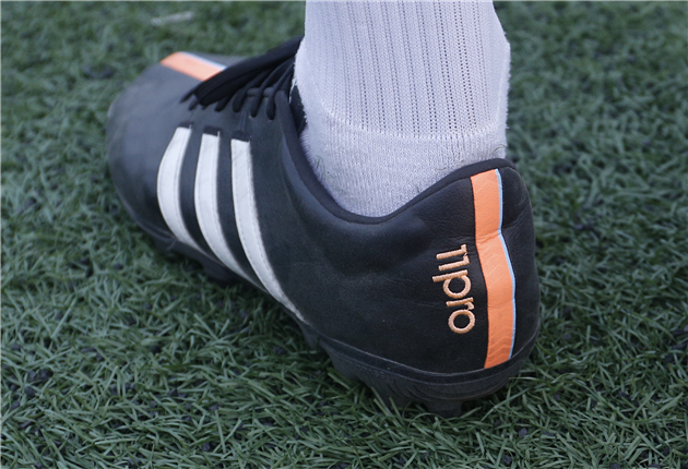 后来因为学习原因也就没打比赛,没参加训练,自然也没理由买球鞋。初三毕业后,买了第一双顶级球鞋f50黑绿配色,感觉这一款的f50,特别适合我的脚型,穿起来特别舒适,射门触球感觉很有力。高中后,添置毒蜂次顶,感觉毒蜂的射门发力很足,只是钉短,上草较长的天然草容易打滑。