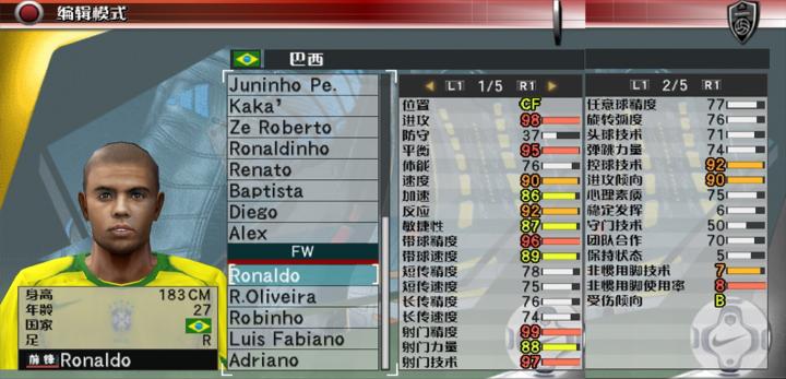 不过唯一可惜的就是罗纳尔多的伤病属性,虽然游戏中罗纳尔多的受伤倾向是B,但在现实中,“外星人”也饱受伤病的困扰,伤病也许是能阻止罗纳尔多唯一的敌人了。