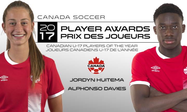 [她与前队友阿方索-戴维斯(温哥华白浪男队)分获2017年度加拿大最佳U17球员]