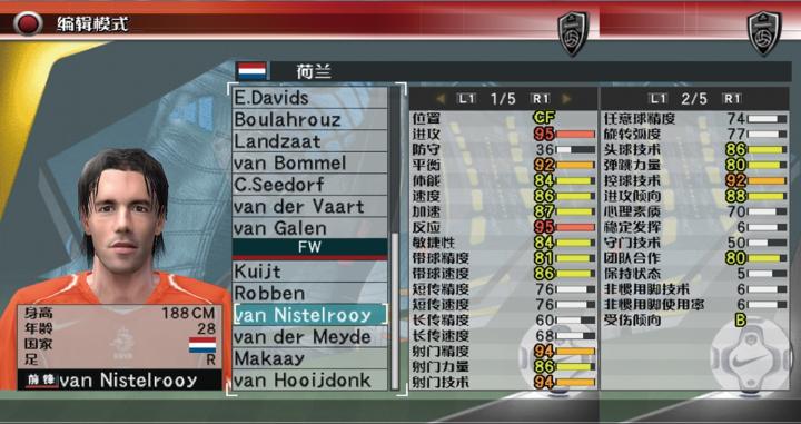 头球抢点是范尼的强项,1米88的身高加上86的头球以及80的弹跳让他在空中如鱼得水。然而范尼并不赖此生存,他的脚下活同样非常细腻,92的控球让他成为了禁区内的舞者。而且在游戏中,曼联的两翼是吉格斯以及那时还被称呼为小小罗的C罗,两边精准的传中也让范尼在游戏中完全符合他“小禁区之王”的称号。